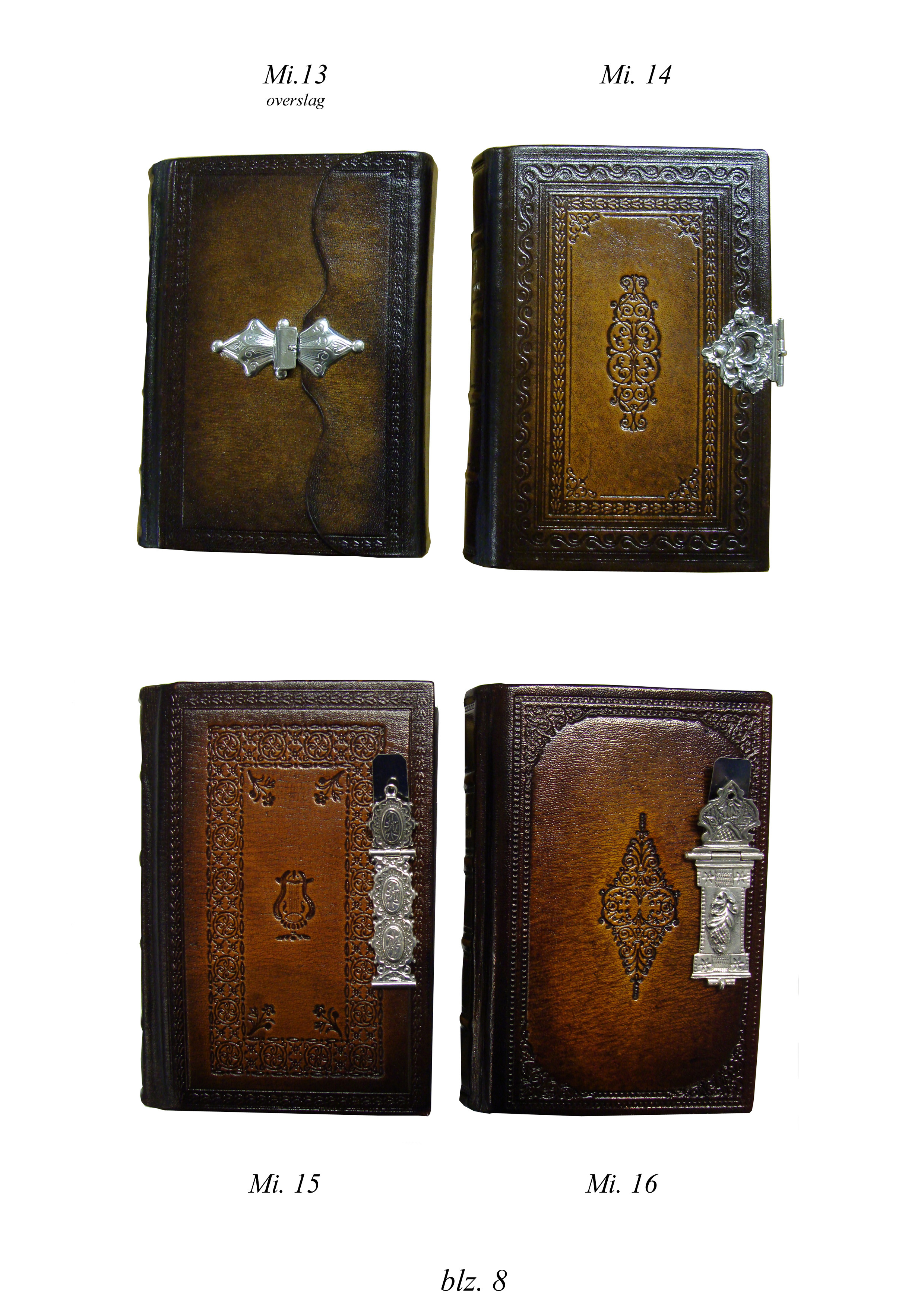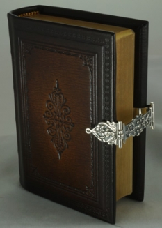 Antiekgebonden micro zakbijbel met blindstempel in lederen band met zilveren slot.