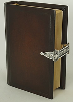 Antiekgebonden zakbijbeltje leer met blindstempel en zilveren slot.