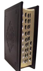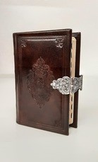 Zakbijbel (84 x 126 m) In antiek gebonden gebonden met koperen slot roos en index.
