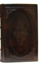 Antiek leder met blindstempel en ovale indruk. Goudsnede, klein formaat. Wordt met zilveren slot geleverd.