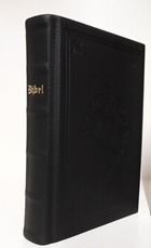Zwart leer met blindstempel , goudsnee, zakbijbel (groot) met Psalmen en formulieren. 10,5 x 16 cm. Dundruk. Met 10 landkaartjes. ...