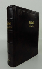 Bijbel met uitleg in goed ingebonden in bruinleren band met goudsnede. formaat:170 x 240