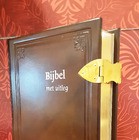 Bijbel met uitleg bruinleer met sloten