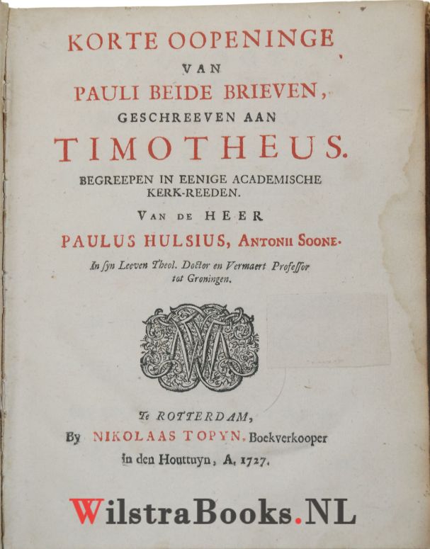 Korte Oopeninge van Pauli Brieven, geschreeven aan Timotheus. Begreepen in eenige Academische Kerk-Reeden.