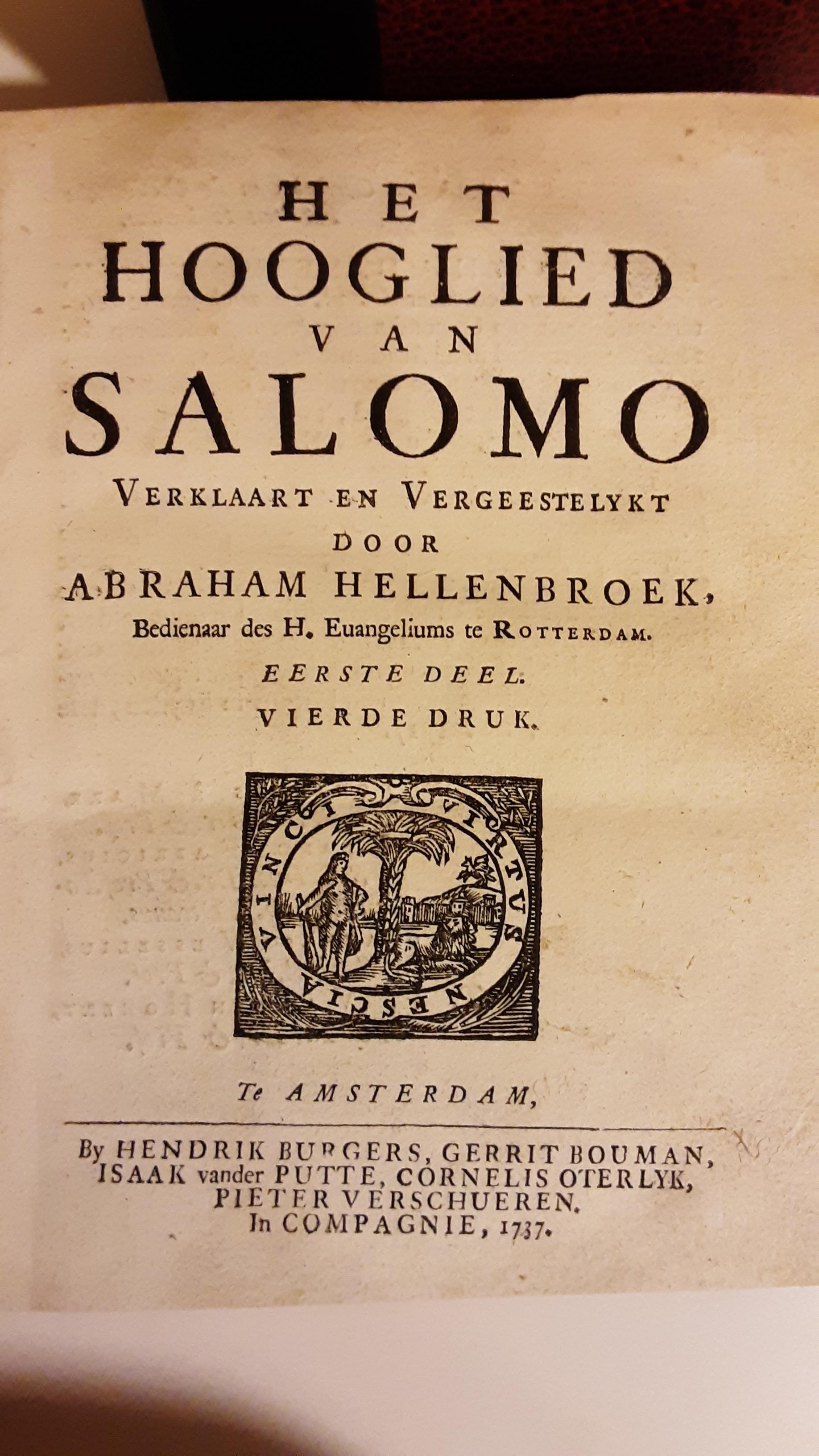 Het Hooglied van Salomo. Verklaart en Vergeestelykt door Abraham Hellenbroek.
