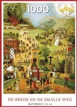 De plaat van de brede en smalle weg in doos op 1000 puzzelstukjes.