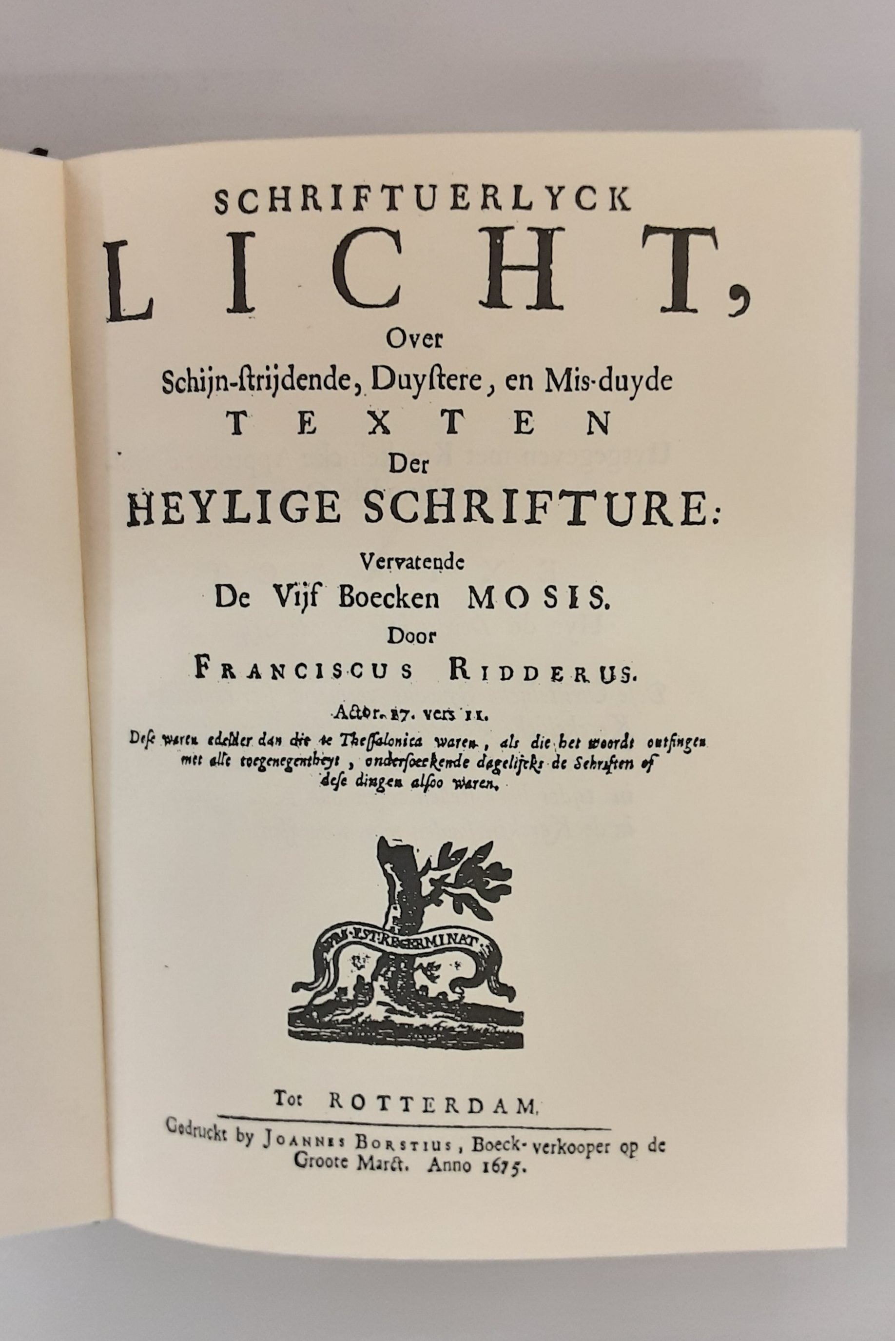 Schriftuerlyck Licht, over Schijn- Strijdende, Duystere, en Mis- duyde teksten der Heylige Schrifture, vervattende de vijf Boecken van Mosis.