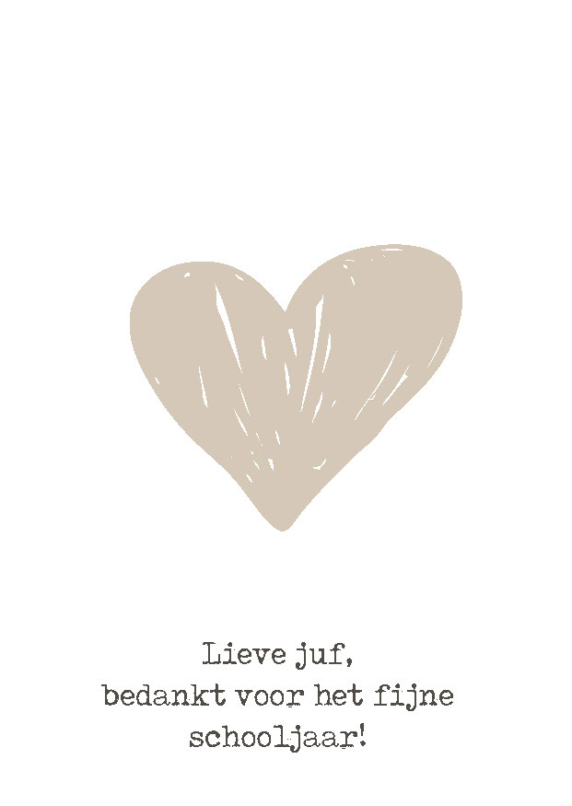 Dubbele kaart op A6-formaat wordt geleverd met envelop. Tekst: "Lieve juf, bedankt voor het fijne schooljaar"