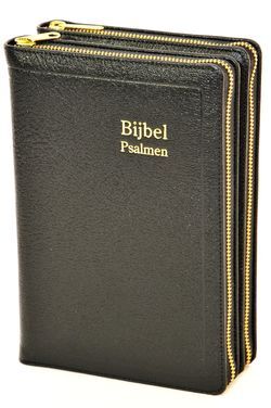 Zakbijbel (groot) met Psalmen en formulieren. 10,5 x 16 cm. Dundruk. Met 10 landkaartjes. Standaard in kartonnen koker.
